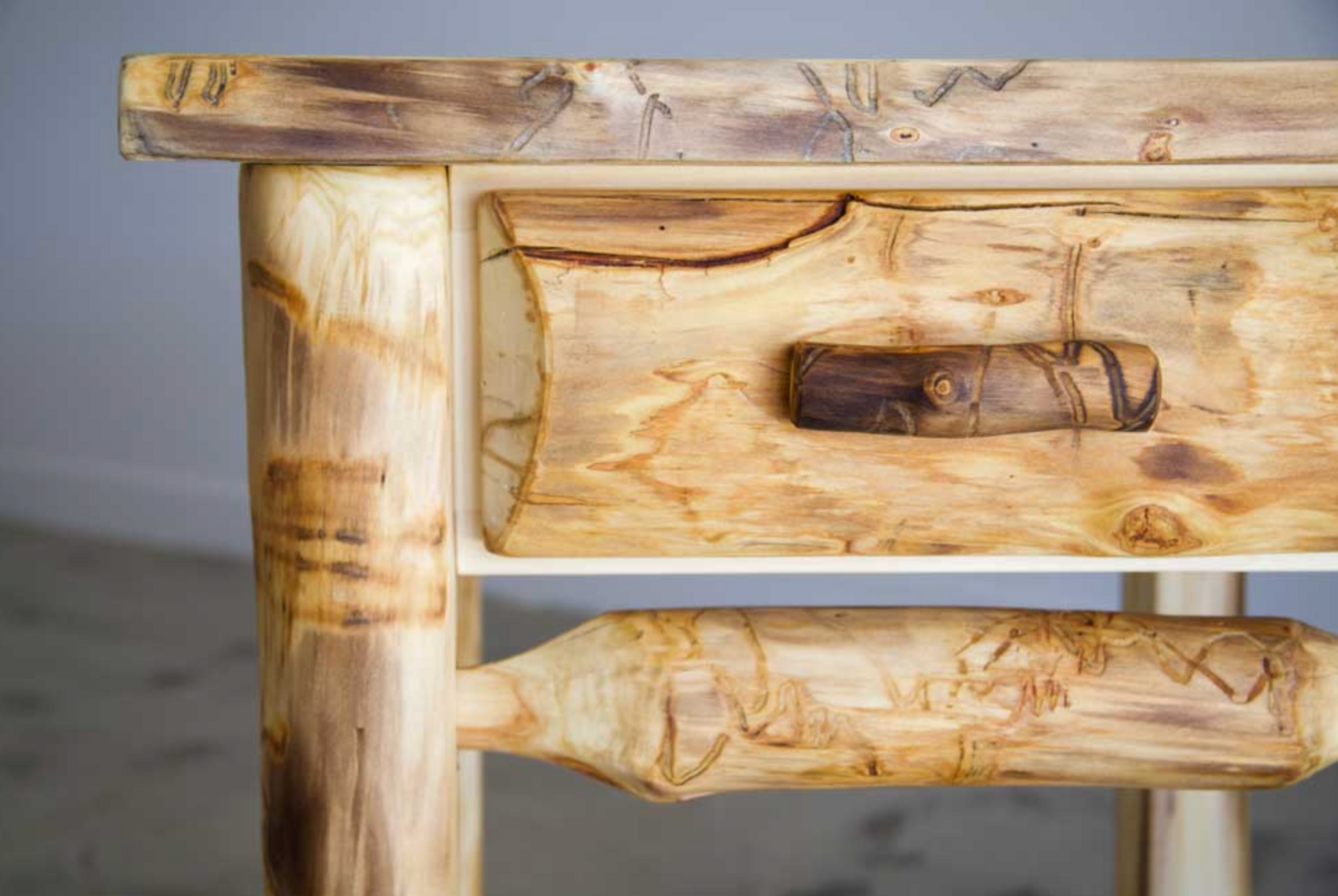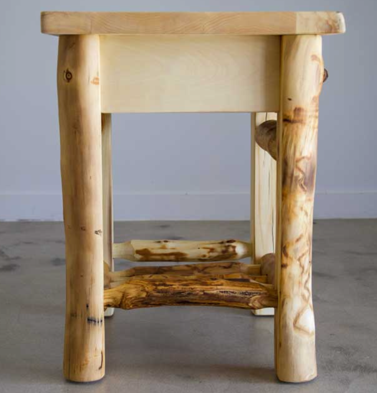 Crafted from local dead standing aspen, the Kodiak 1 drawer nightstand boasts half log drawer fronts and charming curvy log pulls.