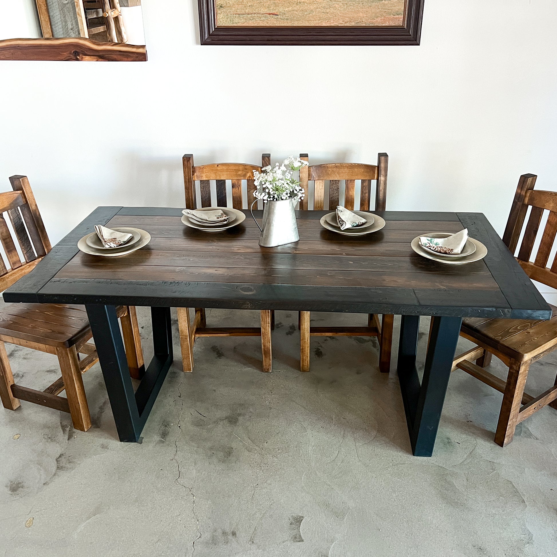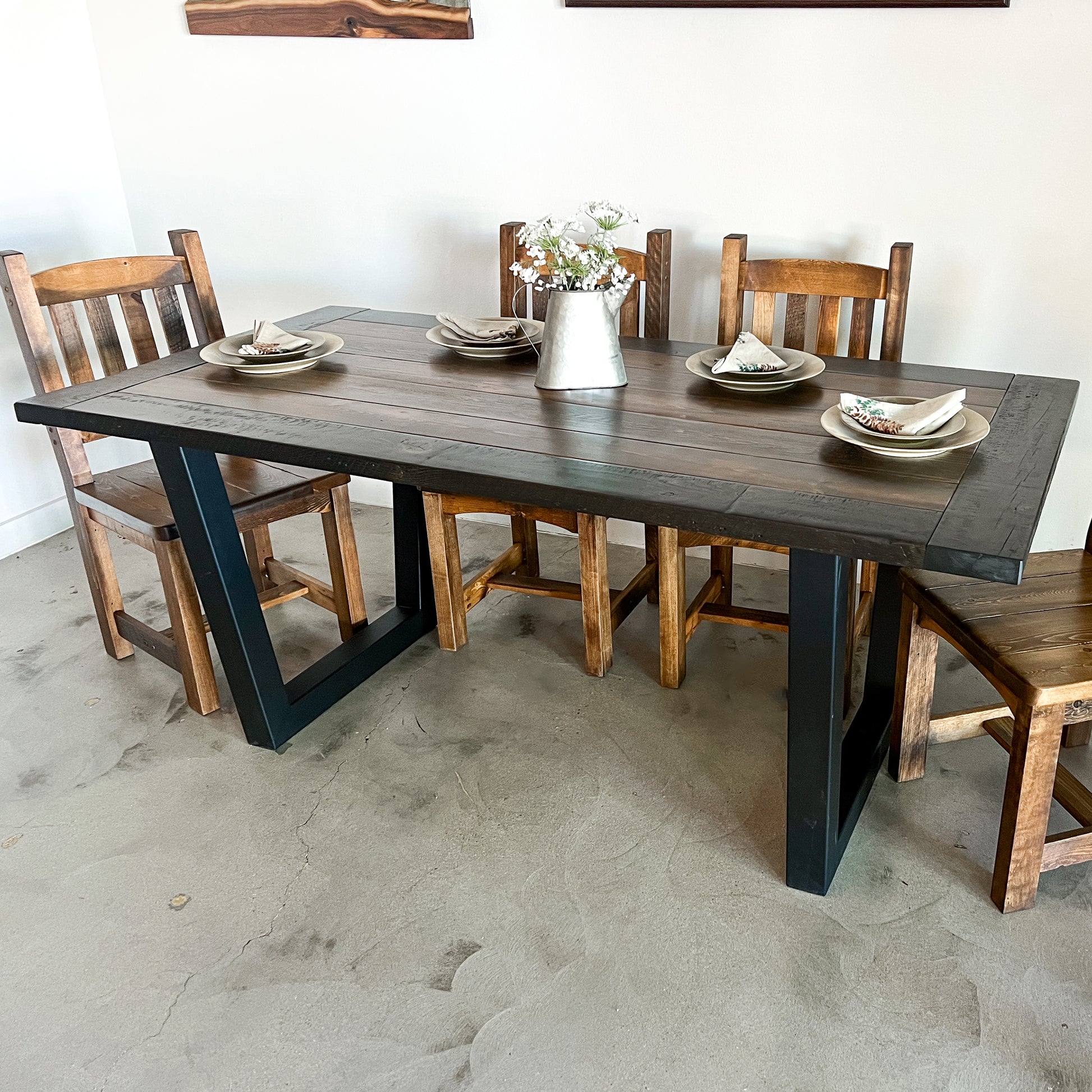 Experience the rugged charm of the old west with our WEATHERED OUTLAW Trestle Dining Table